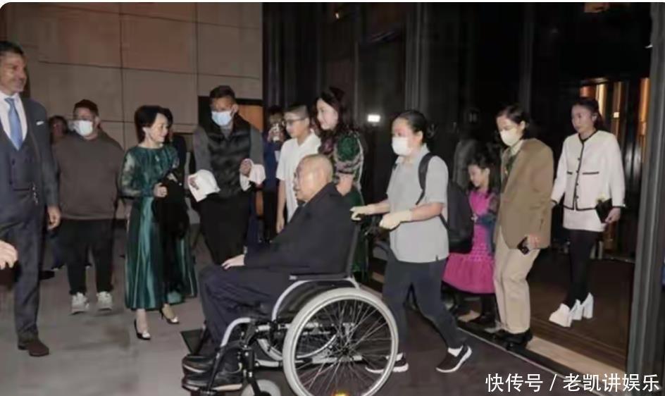 刘銮雄出场引骚动晚上七点半左右,宴会厅外突然一阵骚动。两名戴着白口罩的壮硕保镖开路,中间搀扶着的正是久未露面的刘銮雄。他穿着深色外套,配着一条醒目的湛蓝色裤子,全程低着头,对媒体的闪光灯置若罔闻。