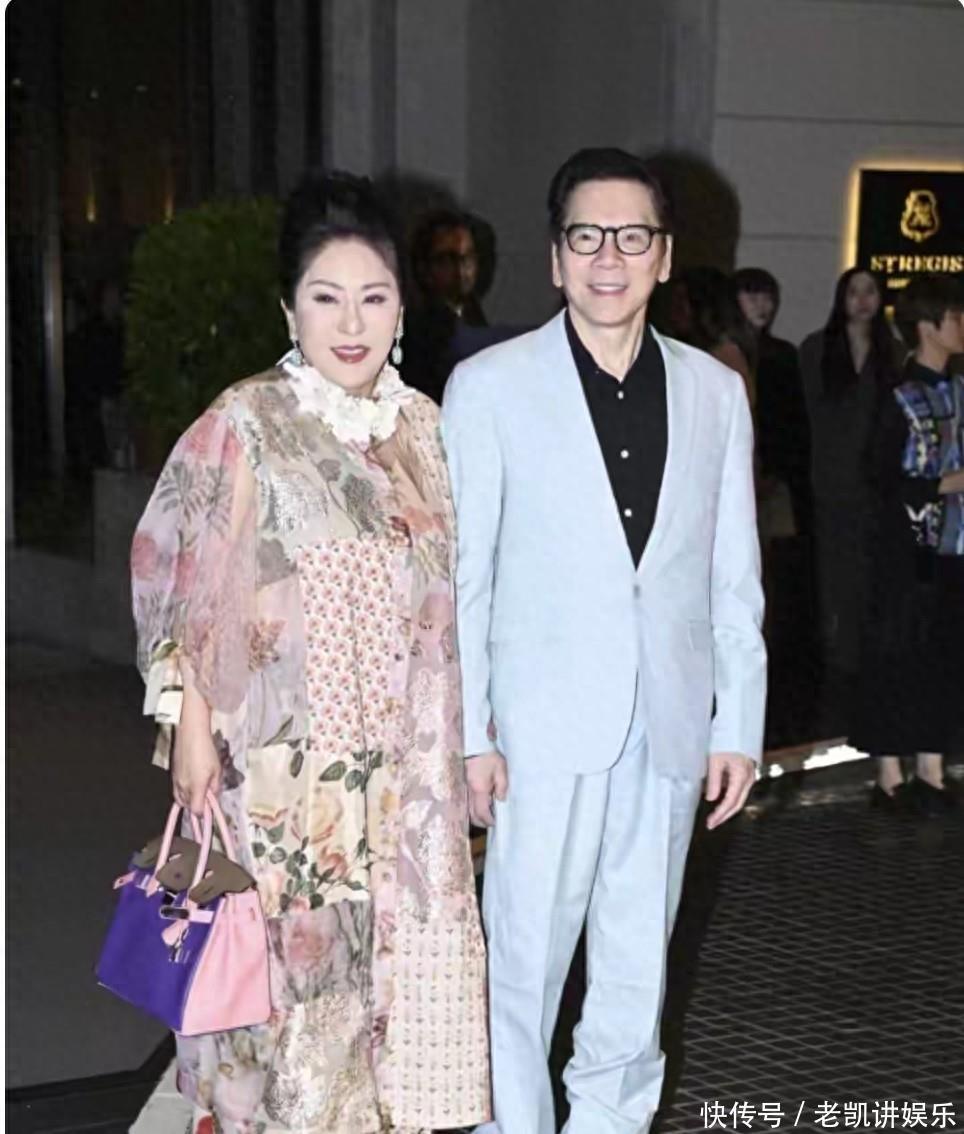 甘比从容应对显风范大刘匆匆进场,把场面留给了太太甘比。今晚的甘比,一身驼色西装搭配白衬衫,手里那只企鹅造型的手包格外抢镜。她从容地站在容祖儿和阿Sa中间,微笑着让记者拍照。这个站位,不经意间透露出她在豪门圈的地位。记得几年前,她还是个跟在富豪身后的小记者。如今站在两位天后中间,那份从容不迫的气场,已然是豪门女主人的模样。40年婚姻的保鲜秘诀作为今晚的主角,73岁的杨受成忙前忙后,每个宾客都要亲自招呼。他在采访区透露,原本没想办这么大:"就怕漏请了哪个朋友,最后还是决定在酒店办。"问到和太年不吵架的秘诀,他看了眼身边的陆小曼,语气温柔:"她脾气好,个性随和。"说完又补充道,"这些年来,我去哪都带着她。"这话说得朴实,却比任何海誓山盟都动人。